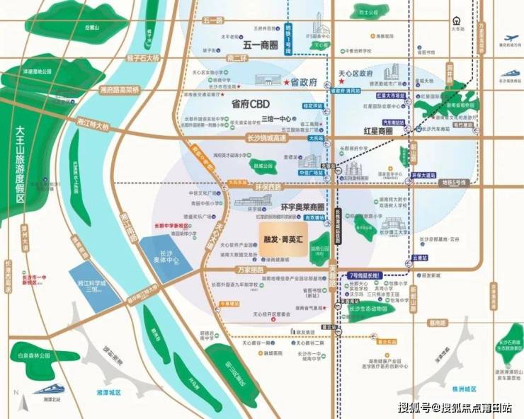 ——城市格局方面,长沙高规格打造南部副中心,暮坪大桥(即将通车)连接对岸湘江科学城。菁英汇,出门就上万家丽路到桥边约5公里,未来10分钟车程可抵达湘江科学城。