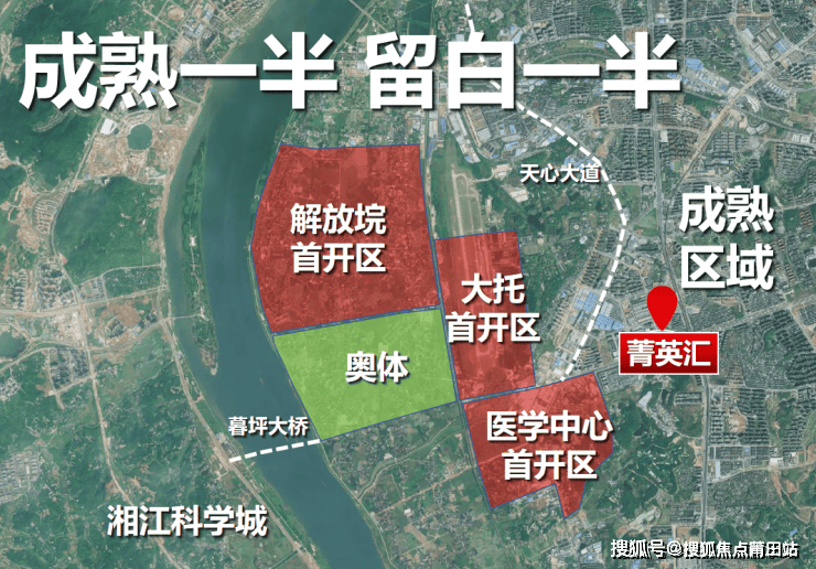 ——片区格局上,南部新城的奥体中心、解放垸(含大托)、国家医学中心(牛角塘)3大首开区就环绕在菁英汇旁。