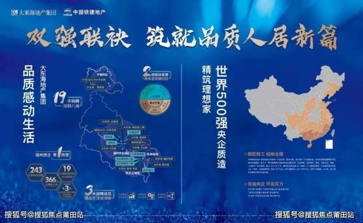【双重品牌 筑就品质人居】 福州房企第一阵营的大东海地产集团,携手品牌价值位列行业TOP19的中国铁建地产,两大实力房企强强联手,以与时俱进的战略远见,占位滨海新城核心,倾力打造百亿综合体之上的全能教育住区新标杆。