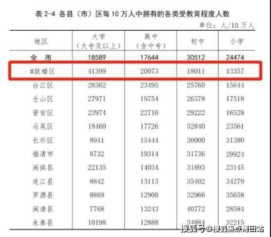 根据最新第九次人口普查情况,在受教育程度人数,鼓楼每10万人中拥有大学文化程度超过4万人,大幅度领先其他县区,位列福州第二。