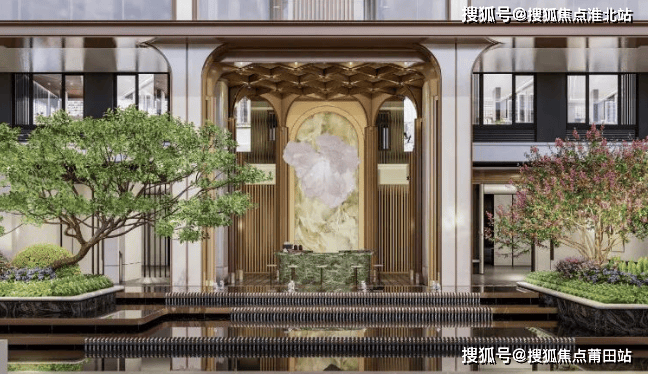约55米宽森奢酒店式门厅,超流体华丽的厅檐勾勒艺术天际,弧形艺术普拉达绿奢石,香槟金艺术格栅,铺陈高贵典雅的归家礼序。门前开阔的广场,设置环岛落客水景,营造出静谧雅致的氛围,让每一次归家都成为一场心灵的洗礼。