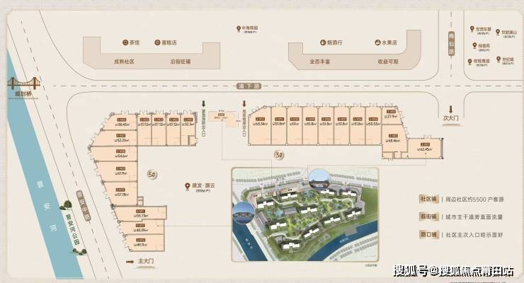 建面约27-69平米,临社区主大门,次大门低总价小铺;