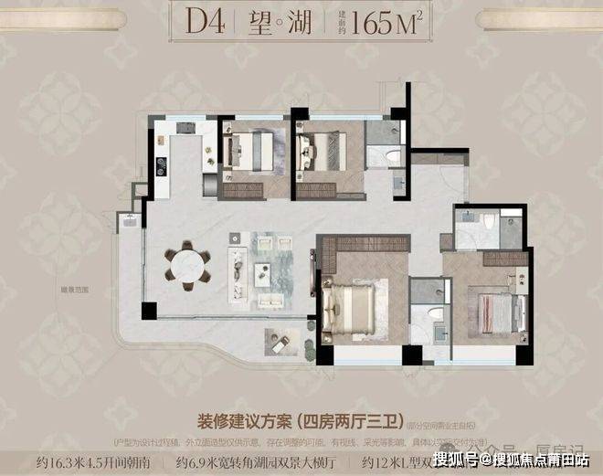 •瑞湖公馆主力户型有三居室和四居室,三居室建面约96㎡,为3室2厅2卫;四居室建面有124㎡、133㎡、165㎡、167㎡、172㎡等,均为4室2厅2卫或4室2厅3卫布局;