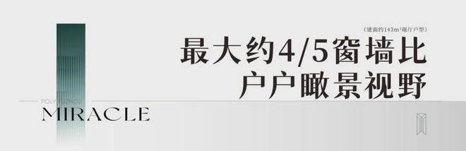 改善级产品窗墙比达1/2以上便已优越,保利天瓒最大约4/5窗墙比(建面约143㎡端厅户型),豪宅空间上更为通透大气,也实现了对滨水景观河视野的尽可能利用。