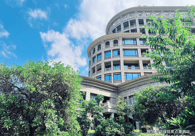 项目建筑为多层退台式设计造型,弧形围合唯美精致,全干挂石材高端大气,立面色调暖和沉稳,历久弥新。