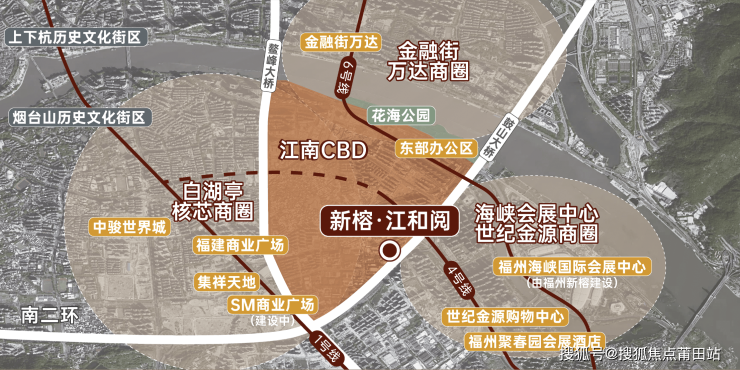 位居南江滨CBD核心腹地,东有海峡国际会展中心-世纪金源购物中心集群配套在侧,西临SM广场(在建)-集祥天地核芯商圈,北岸金融街万达商圈覆盖,全维商圈环覆半径皆繁华。