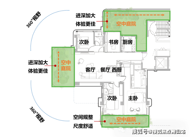业主能够畅享 360 度无死角的极致景观视野,仿佛置身于 “庭院深深深几许” 的诗意情境,在空中田园体验悠然自得的生活意趣,真正实现建筑与自然的和谐共生。