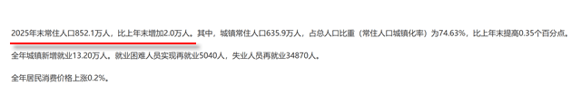 其中,城镇常住人口635.9万人,占总人口比重(常住人口城镇化率)为74.63%,比上年末提高0.35个百分点。