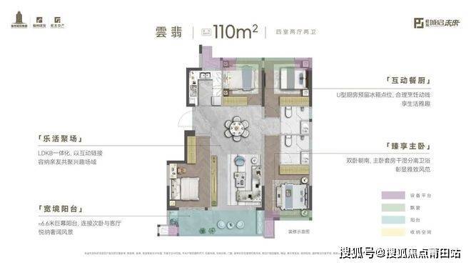 它充分利用了建筑新规,通过飘窗全送、阳台半送等巧妙设计,把每一平米都用到极致。比如它一套110㎡的洋房,实际能利用的面积约108㎡。