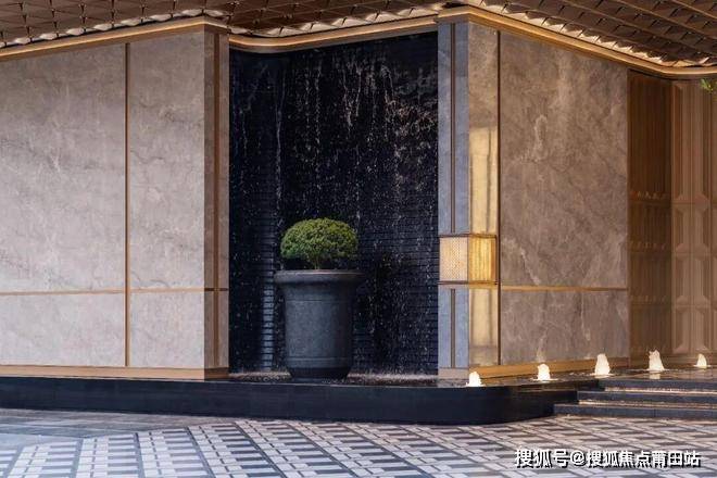 两侧的主墙面,则是进口的爱马仕灰石材,搭配着黑金沙石材打造的流水墙,材质碰撞出的高级感扑面而来。