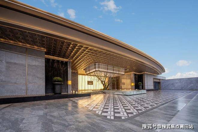 先说归家的仪式感。将近50米宽的迎宾界面,配上弧度优雅的大挑檐,一下车就感觉像是到了五星级酒店的门廊,入口设计的非常有气势,第一眼就把高级感拉满了。
