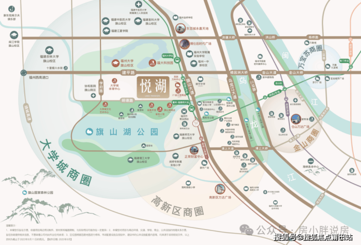 项目地处高新区与大学城交汇核心,兼具“产-学-景-商”四维优势:生态资源:千亩旗山湖公园环绕,与乌龙江湿地公园(规划)形成双生态绿肺。
