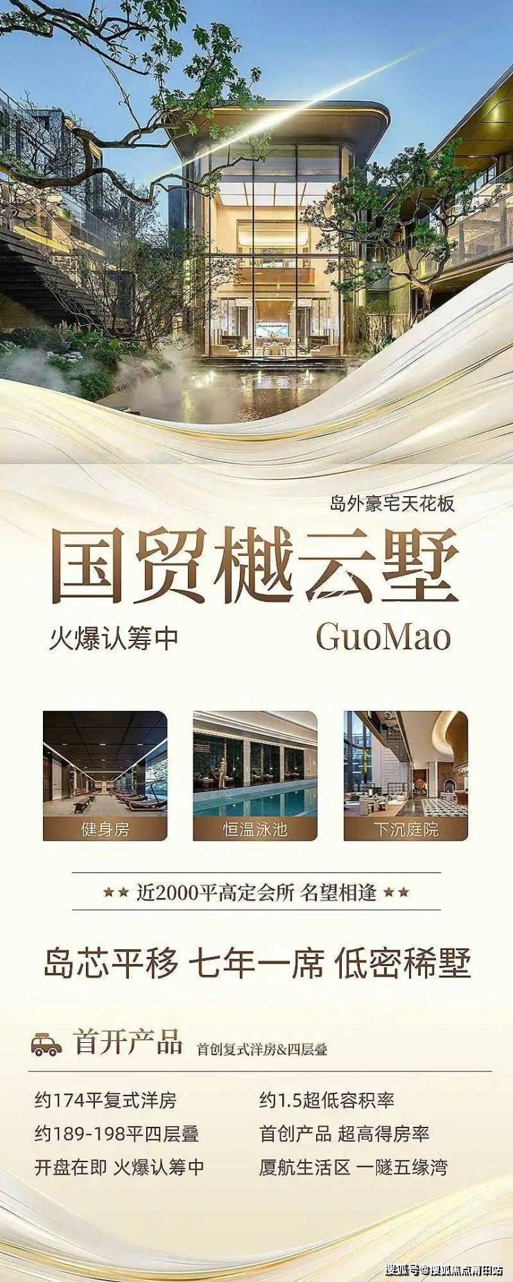 国贸樾云墅厦门首批四代院墅级近岛奢宅,主推面积约129-266平别墅、叠墅、复式洋房、四代宅小高层,全都是大面积真改善产品!小高层层高3米,叠墅层高3.15米,独栋别墅层高3.6米,