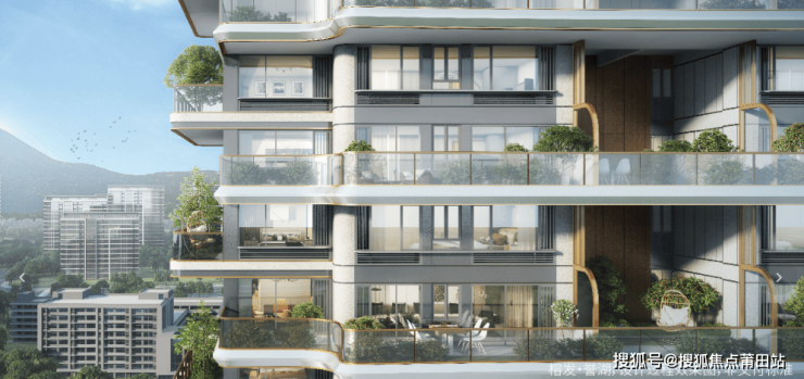 建筑设计上,项目借鉴了意大利米兰“垂直森林”的理念,采用奇偶层南北花园规划,形成连贯式L型及U型一体化空中庭院,最大露台使用面积可达约107平方米。