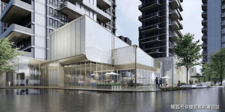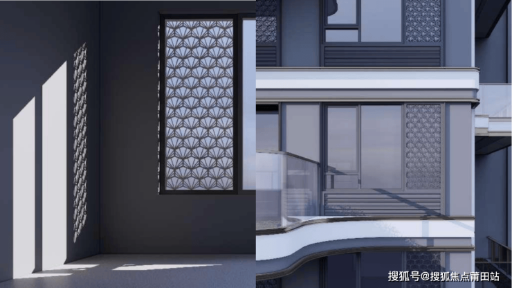 连绵层叠的马鞍墙是福州城的建筑 IP。因此,天琴樾在商业建筑立面上引入白马河水流形态,延续先锋的优雅曲线,并提取出海洋美学元素,作为定制海贝窗花元素。