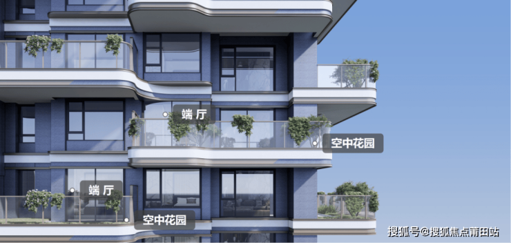 国贸天琴樾在花园奇偶层设计上遵循平衡主义,做到差异最小化,每层每户都配备南向阳台,采用端厅+空中花园的形式,让奇偶数层阳台与花园始终围绕客厅核心功能展开,在露台设计上均衡户外户内关系,最大限度让出公共空间。