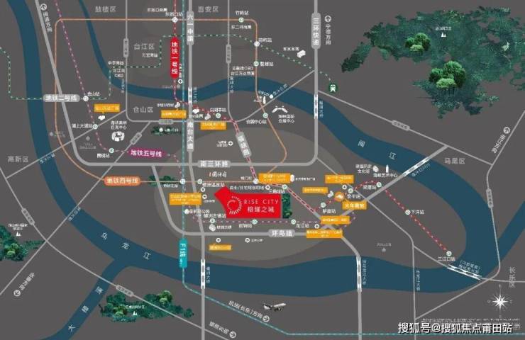 四轨交汇 + 主城地铁步行 8-12 分钟到 1 号线三角埕站,近 5 号线前锦站,F1/4 号线规划加持,3 分钟上三环、5 分钟接二环。