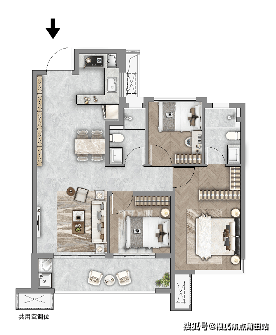 【凌湖】建面约120㎡户型 四房两厅两卫