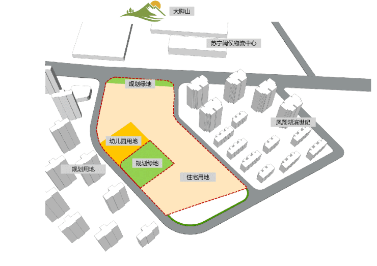 不仅是内部绿地,借景的设计思路也是高效地利用周边的自然景观,设计顺应周边城市肌理,形成组团空间,并通过建筑高度变化,打造丰富城市天际线。引入北侧山景资源,将其无缝衔接进项目的景观体系之中,结合场地内规划绿地,以轴线串联,打造层次丰富的景观空间。