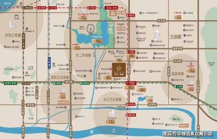 榕发·湖樾的最大亮点在于其稀缺的地理位置。项目直距晋安湖约700米,使业主可轻松享受湖滨公园带来的自然生态与休闲配套。同时,项目具备真正的“双轨地铁房”属性,距离地铁2号线与4号线(规划中)交汇的前屿站仅约200-320米。由此出发,1站可达宜家,2站直达台江万达或世欧王庄,3站即达东泰禾广场,4站可至南门兜换乘枢纽,5站便抵达城市中心东街口,无缝对接全城繁华。