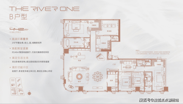 B户型约442㎡(5+1房3厅4卫)