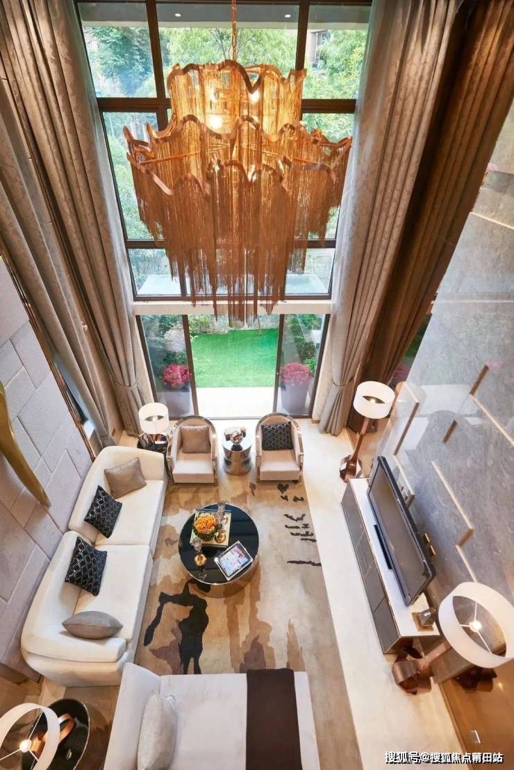 客厅交付时是6米挑高的空间设计,彰显主人的不凡气度,采光和通风更加通透,空间阔绰大气。