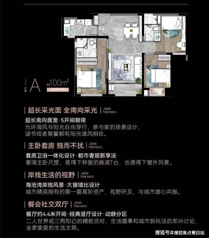 特点:宽敞明亮的客厅,卓越的采光与通风设计,部分户型拥有270°环幕视野,可欣赏海沧湖与海沧湾的壮丽景色。
