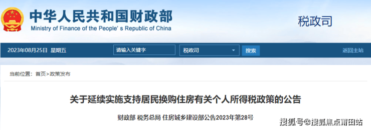 日前,财政部发布《关于延续实施支持居民换购住房有关个人所得税政策的公告》,根据公告,对出售自有住房并在现住房出售后1年内在市场重新购买住房的纳税人,对其出售现住房已缴纳的个人所得税予以退税优惠,公告执行至2025年底。