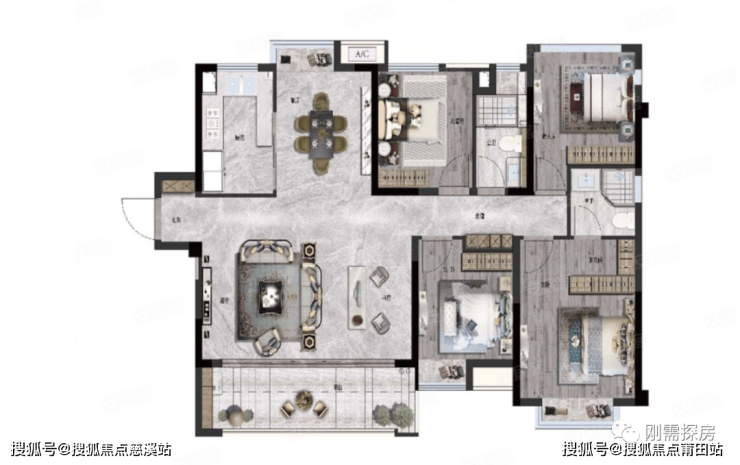 137平米:4+1房两厅两卫,布局与119户型一致,仅仅是增加了北侧一个房间,不过137平米的产品,已经接近刚改起步,未来配合较高的单价,市场接受度依然需要评估。