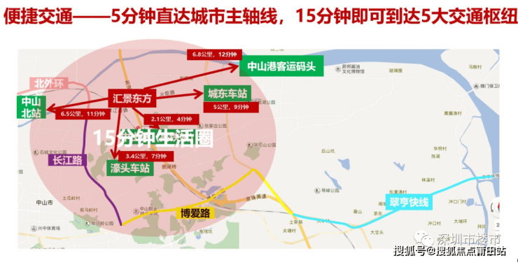 4、五分钟直达高铁站(中山站)15分钟直达四大商圈(中山港壹加壹、星河COCO CITY、大信及利和商圈)5大区域(西区、石歧、港口、东区、开发区)
