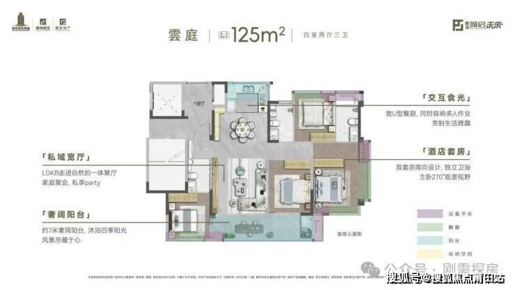 125平:不同于市场卷极致得房率,考虑到这个预算的居住体验,项目采取了一梯两户,电梯双开的设计,相当于独梯独户,规划出约7㎡前厅,这个前厅还是全明设计。