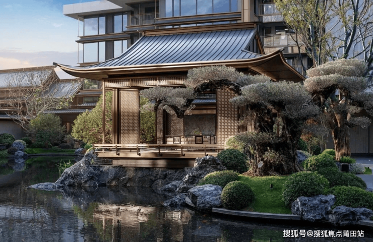 建发将“风雅宋韵”浓缩进紫宸, 为福州再现一座宋风美学艺术馆:从宋画《水殿招凉图》汲取灵感,复现方格挂䈋、避风䈋、擗帘杆等古法构件,让千年前的生活场景在此重生;亦在风雨连廊等框景设计中,按照宋代赏石“瘦、透、漏、皱”审美精选的太湖石,自带风霜雕琢的肌理,或瘦骨嶙峋,或孔洞通透,如似从宋画中走来;首创的文化策展空间,把艺术感融入建筑空间,9米漆画《千里江山图》让艺术鉴赏成为日常仪式,并被同行竞相模仿。
