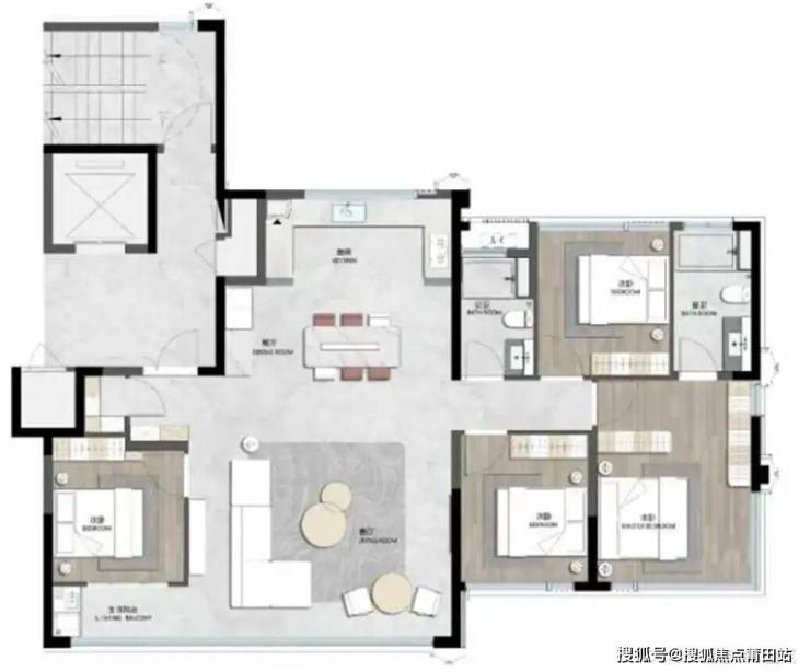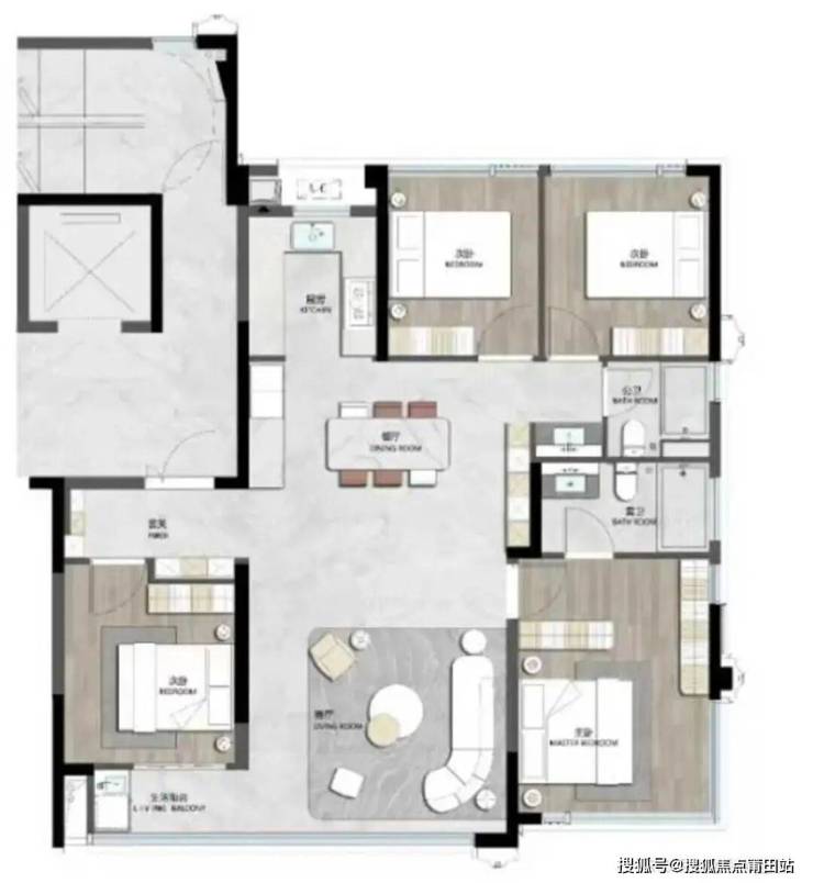 超高得房率+全四房设计,近乎“零公摊”的空间体验;
