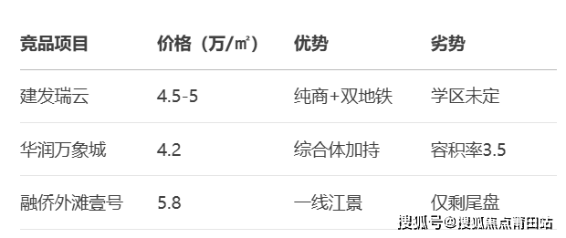 根据克而瑞2025年5月数据,台江区在售项目中,安商房均价约3.2万/㎡,纯商项目溢价率达18%。建发瑞云放风价4.5-5万/㎡,需直面三大挑战: