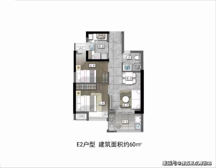 60平两房一卫一厅,户型方正,户户采光,南北通透
