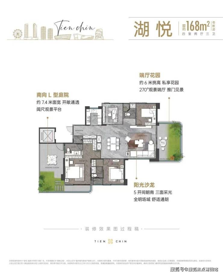 户型创新:135-168㎡主力户型采用南向采光布局,143㎡主推户型独立主卧设计,168㎡户型突破传统空间划分,满足多代同堂需求;