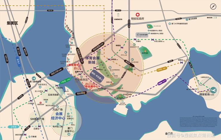 项目地处翔安区的奥体中心和会展中心核心区域,这一地理位置的优势使得居民可以方便地享受到区域内的各种公共设施和服务。交通方面,项目紧邻地铁3号线的两个站点——东界站和体育会展站,距离分别约为450米和800米。这种便捷的交通条件极大地提高了居民的出行效率。项目还享有翔安大桥和翔安隧道的便利,其中翔安大桥已通车,从项目出发仅需5分钟即可自由切换岛内外,极大地提高了出行的便利性。项目周边规划有城市绿廊,为居民提供一个宜居的生态环境,同时也提升了项目的整体品质。项目内部设有两个大型园林,总面积超过4000平方米,为居民提供了一个绿意盎然的休闲空间。项目还规划有一桥一隧三轨道的交通网络,包括翔安大桥、翔安隧道以及地铁3号线、4号线和8号线,形成了便捷的立体交通体系。
