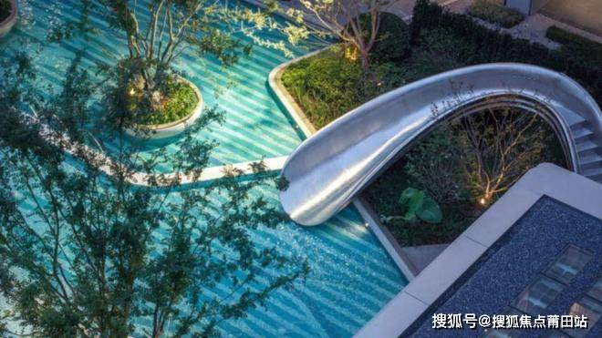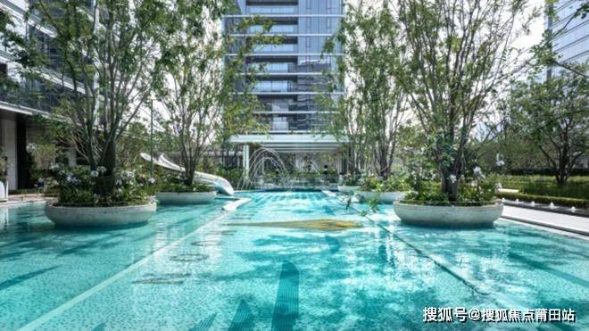 嬉水池才是无界景观的必选项。很多楼盘不做的原因是,嬉水池通常很难像绿城·芝澜月华这样能够做出一种极具高奢感的美。这需要房企对于嬉水池的色彩、纹路与空间关系等环节都要有精确的控制力。