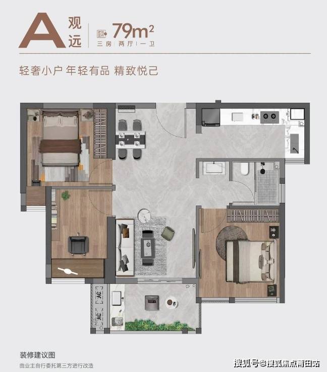 79㎡紧凑三居(南北通透,全明设计);