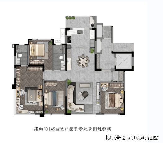 建发瑞云在产品定位上非常纯粹,全部规划为149-236㎡的大平层户型,这意味着社区圈层统一,避免了不同产品类型的混杂。建发房产标志性的新中式建筑风格是项目的一大亮点,从王府大门到园林造景,旨在繁华都市中营造一片具有文化底蕴的居所。
