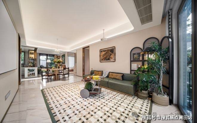 【育儿带娃期】若无需父母帮衬,可将餐客厅打通为开放式厨房,小孩在客厅中玩耍,就算是煮饭过程也能够照看小孩。