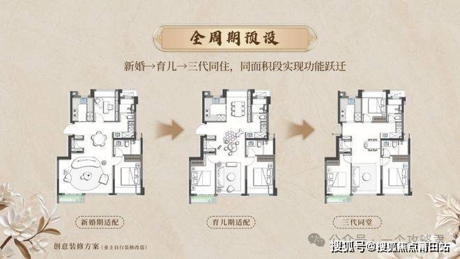 【新婚二人期】可将邻厅次卧改为阔绰宽厅,满足二人世界、会客接待、居家健身、办公等功能。