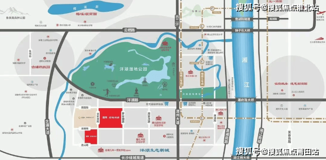 交通配套:周边直线 3km 范围内有 3 个地铁站,分别是洋湖湿地、山塘、洋湖新城,距离最近的是洋湖湿地站;直线 1km 内有 11 个公交站。