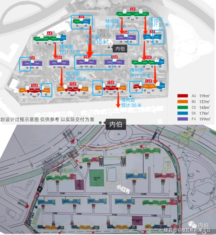 3、第二、三排前后楼间距最好,预计都能有40米,小高层16层的话,中低楼层采光也能保障。
