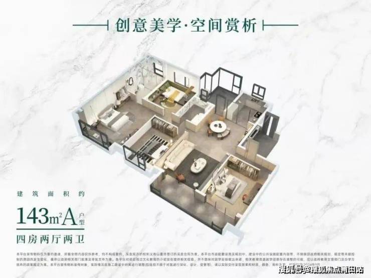 以项目143㎡的户型为例,该户型以超高的得房率卷出了4+1的空间,加上独立电梯厅入户,私密与尊荣并存,直接对标180㎡大平层享受。