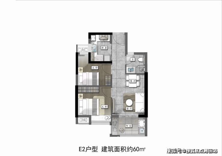 60平两房一卫一厅,户型方正,户户采光,南北通透