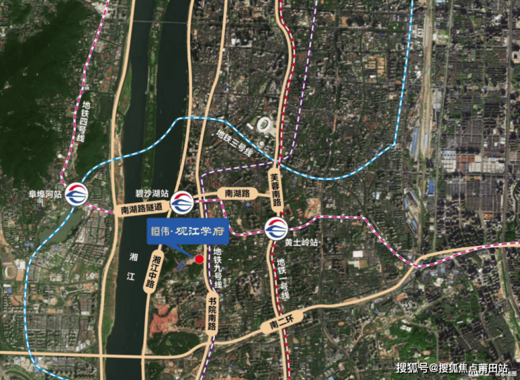 观江学府位于长沙市天心区南湖新城核心区,书院路与南沿路交汇处,项目周边交通便捷