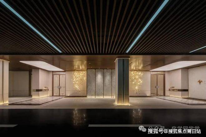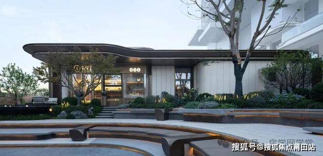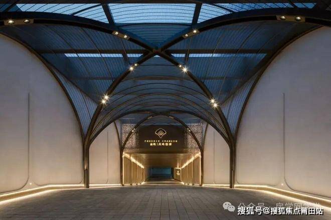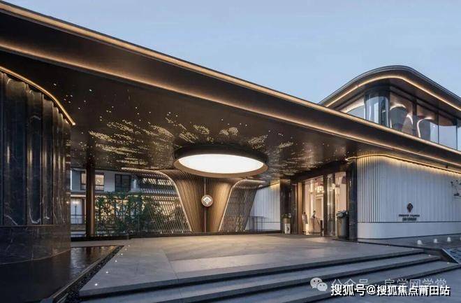 横向约67米、约7.5米高、如凤凰展翅的安缦风艺术门庭,异形处理的香槟色铝板屋檐、大面积大理石立面、黑金沙石龙鳞水波铺砖、高悬的明月园灯,拉满顶尖学府的归家排面。它不仅是建筑的起点,更将建筑、社区入口与地下车库入口完美地融合为一个整体。