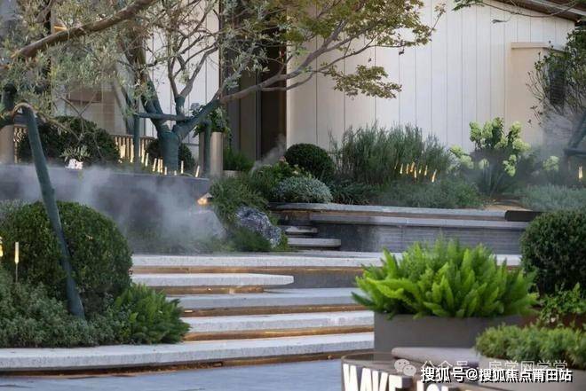 入口的口袋公园成为了商业街区与社区入口之间的过渡空间,为两者提供了自然的衔接。这个空间利用台阶巧妙地处理了场地高差,拾级而上,仿佛一步步走进绿野,沉浸在自然的芬芳中。