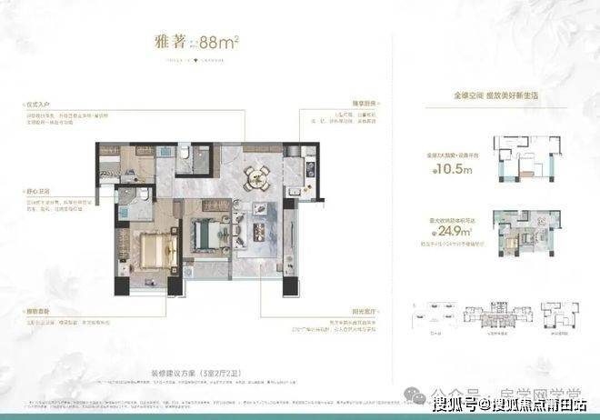 项目创新拥有【私家入户花园+大飘窗赠送+四代宅空中花园】,88-99㎡瞰景高层拥有83-89%综合使用率,130-140㎡洋房达到105%的综合使用率。